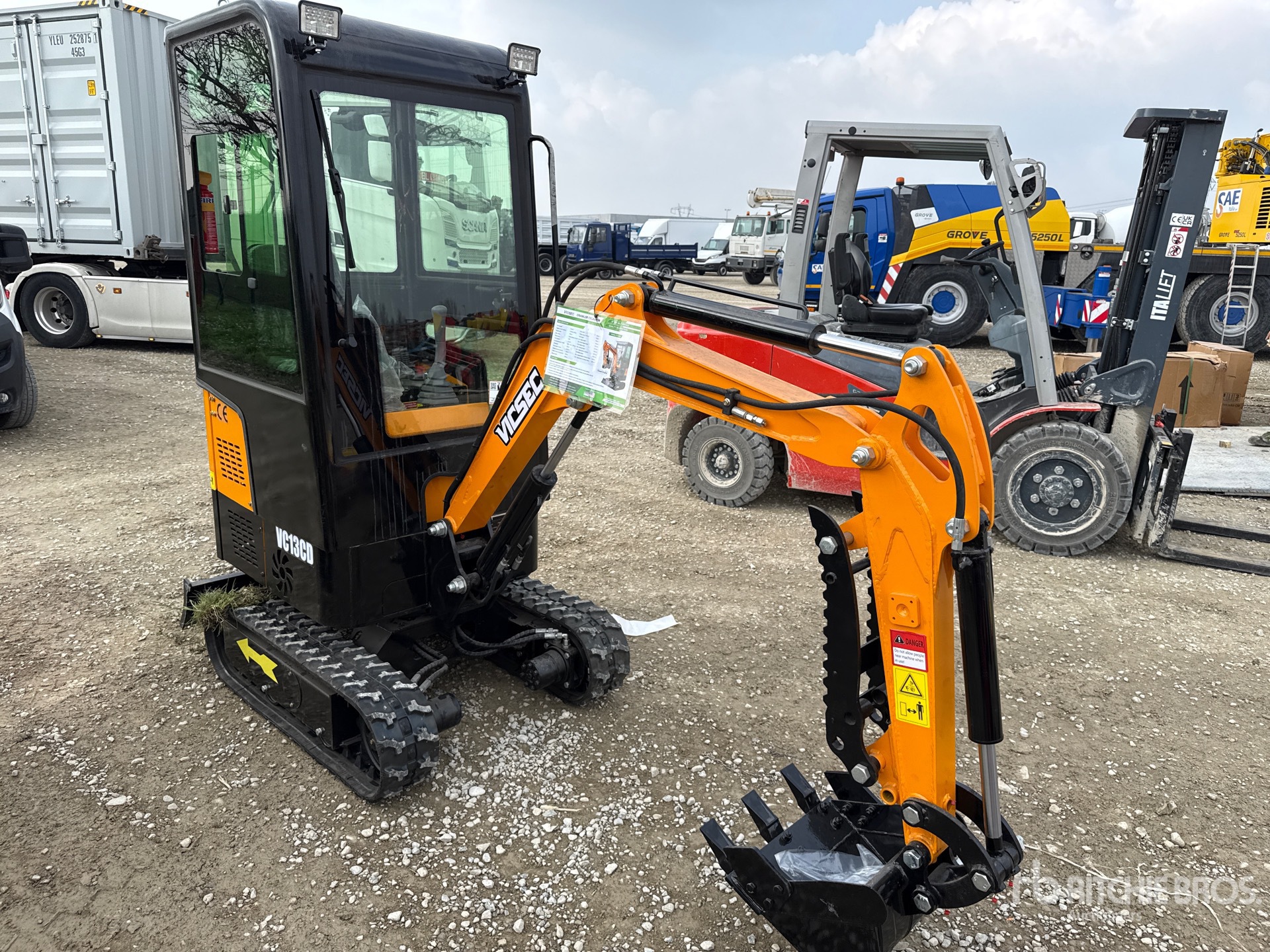 L'équipement n'a pas été testé avec charge ou utilisé dans toutes les situations applicables. Nous ne garantissons en aucun cas le bon fonctionnement de l'équipement conformément aux spécifications du fabricant. Aucune inspection n'a été effectuée pour vérifier tout aspect fonctionnel, sauf indication expresse dans le présent document. Seule une sélection de photos des composants individuels du train roulant sont à disposition, et peut ne pas indiquer l'état de l'ensemble de celui-ci.