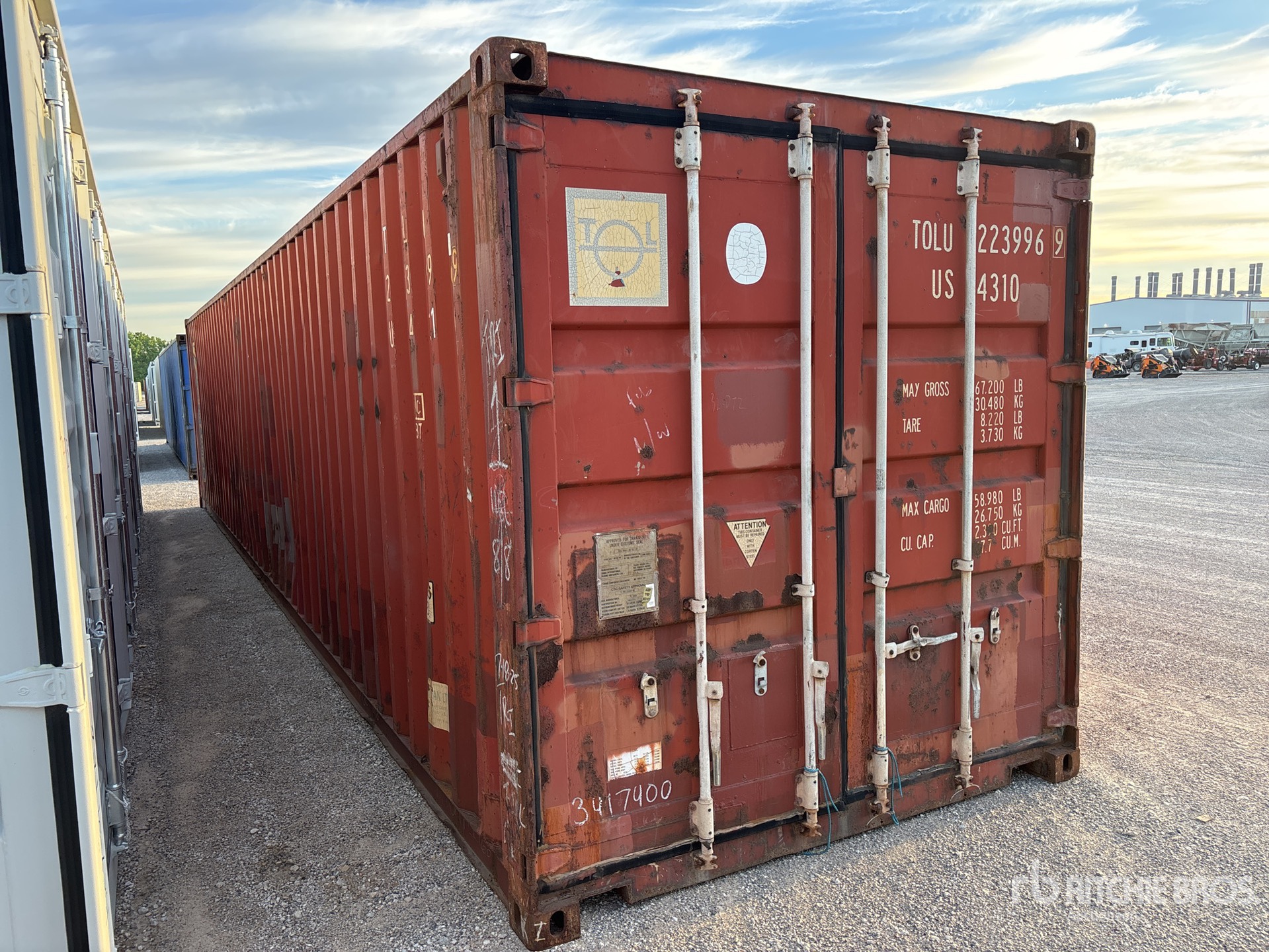 Les informations détaillées de l'équipement ont une portée limitée. Ritchie Bros. Auctioneers n'a inspecté aucun aspect ou composant de l'équipement autre que ceux expressément énoncés dans le présent document. Sauf indication expresse, nous ne faisons aucune déclaration ou garantie, expresse ou implicite, concernant l'équipement et/ou ses composants, y compris, sans s'y limiter, toute déclaration ou garantie concernant le fonctionnement, la conformité à toute norme ou exigence de sécurité de toute autorité ou tout organisme de réglementation applicable, l'adéquation à un usage particulier ou la qualité marchande. Nous vous conseillons fortement d'effectuer vous-même une inspection détaillée de l'équipement avant d'enchérir.
