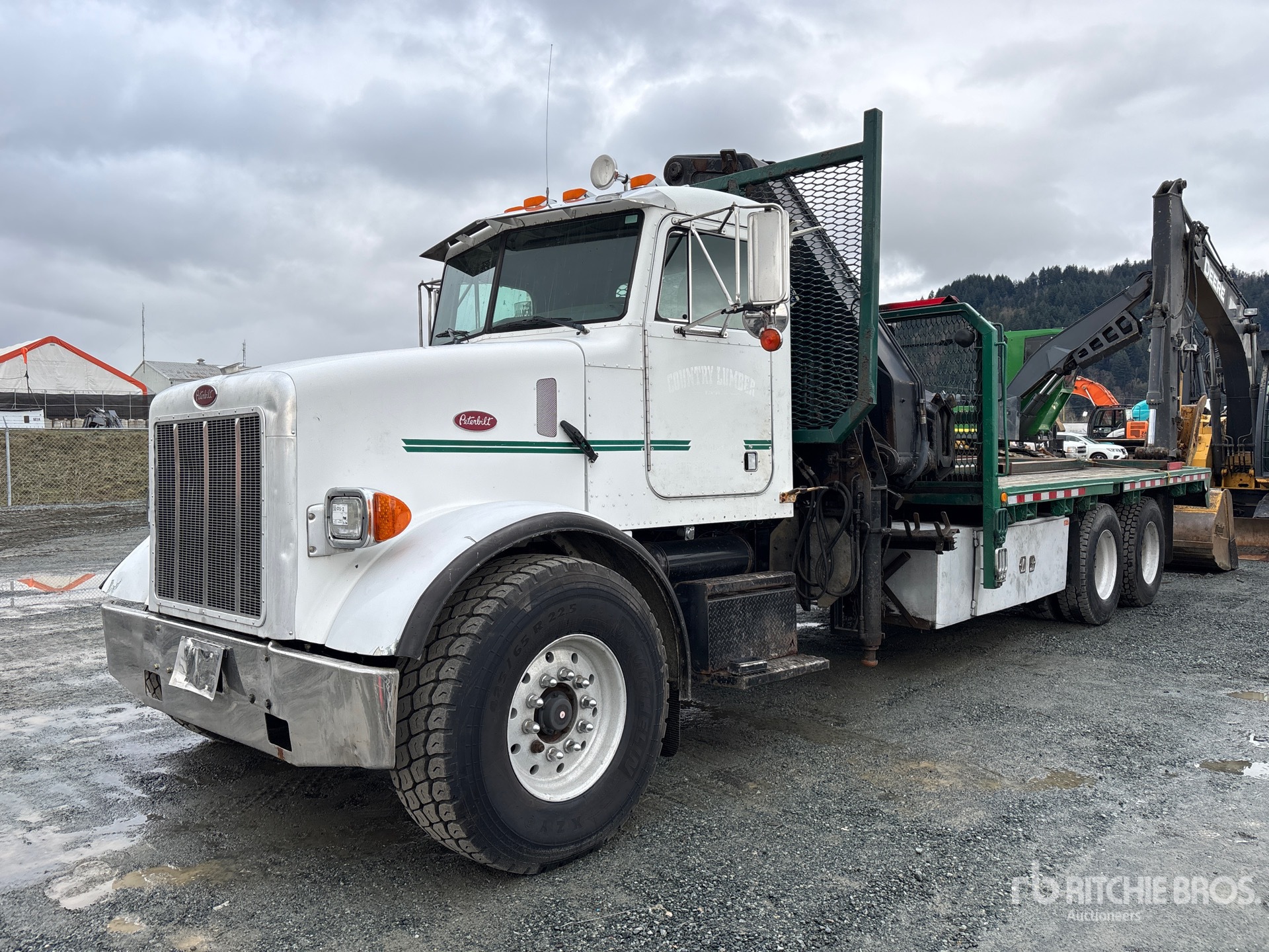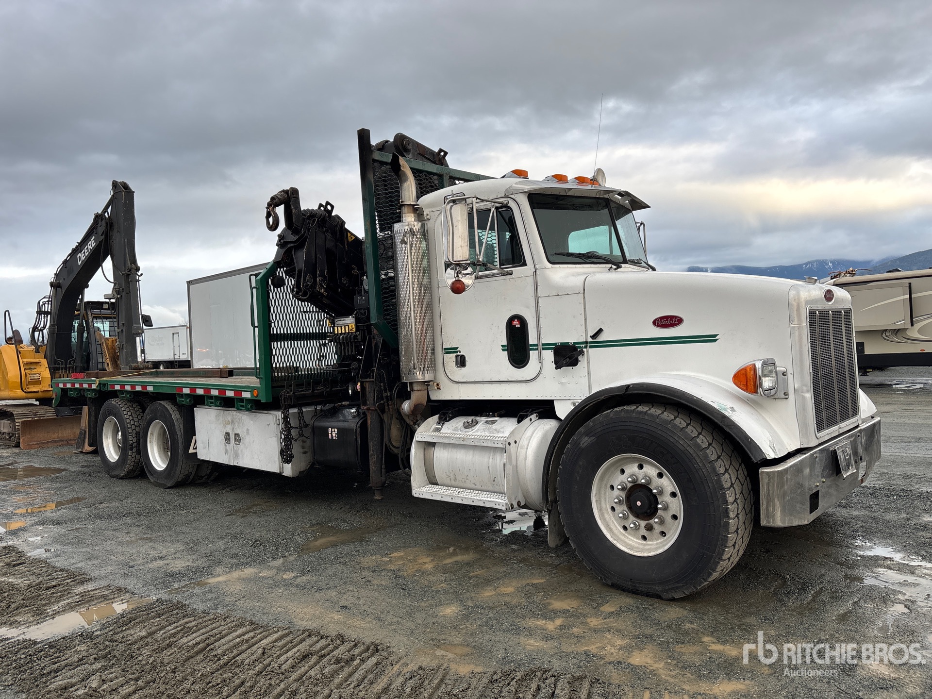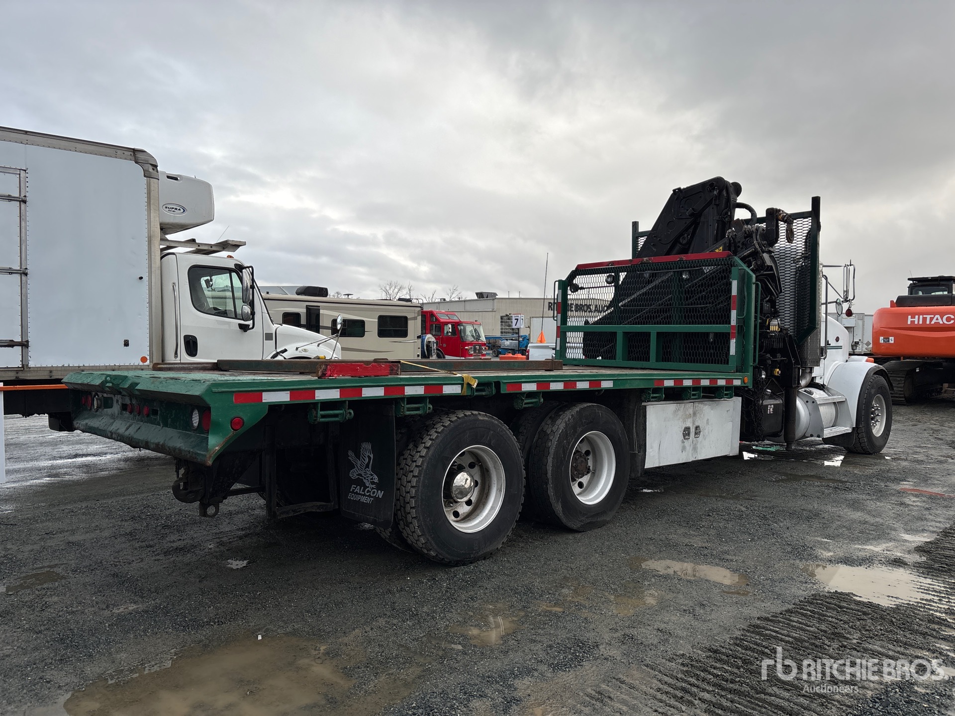 Cat C12 6 Cylinder Diesel Engine, Eaton Fuller RTLO-16913A 13-Speed Manual Transmission, 20000 lb Front Axle, 44000 lb Rears, Dana SPC DS463P Drive Axles, 4.33:1 Axle Ratio, 64000 lb GVWR, Aluminum Wheels, 425/65R22.5 Front Tires, 11R22.5 Rear Tires, Air Ride Suspension, 274 in Wheelbase, 8 ft - 49 ft 7 Section Boom, Straight Down Outriggers, 2007 Hiab 330-G 12000 kg 7 Section Hydraulic Crane, 18 ft 6 in x 102 in Bed, Pintle Hitch