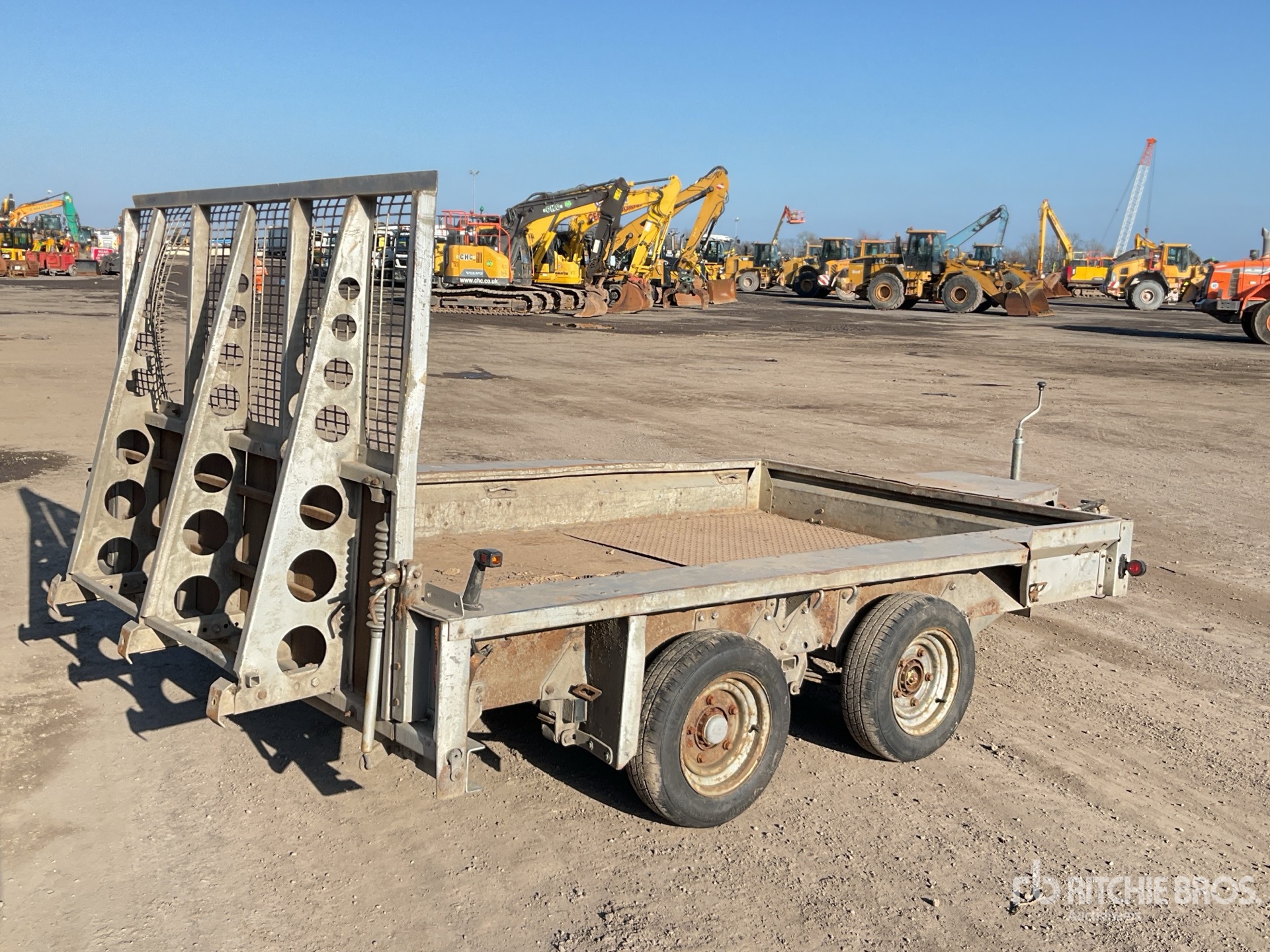 L'équipement n'a pas été testé avec charge ou utilisé dans toutes les situations applicables. Nous ne garantissons en aucun cas le bon fonctionnement de l'équipement conformément aux spécifications du fabricant. Aucune inspection n'a été effectuée pour vérifier tout aspect fonctionnel, sauf indication expresse dans le présent document. Seule une sélection de photos des composants individuels du train roulant sont à disposition, et peut ne pas indiquer l'état de l'ensemble de celui-ci.