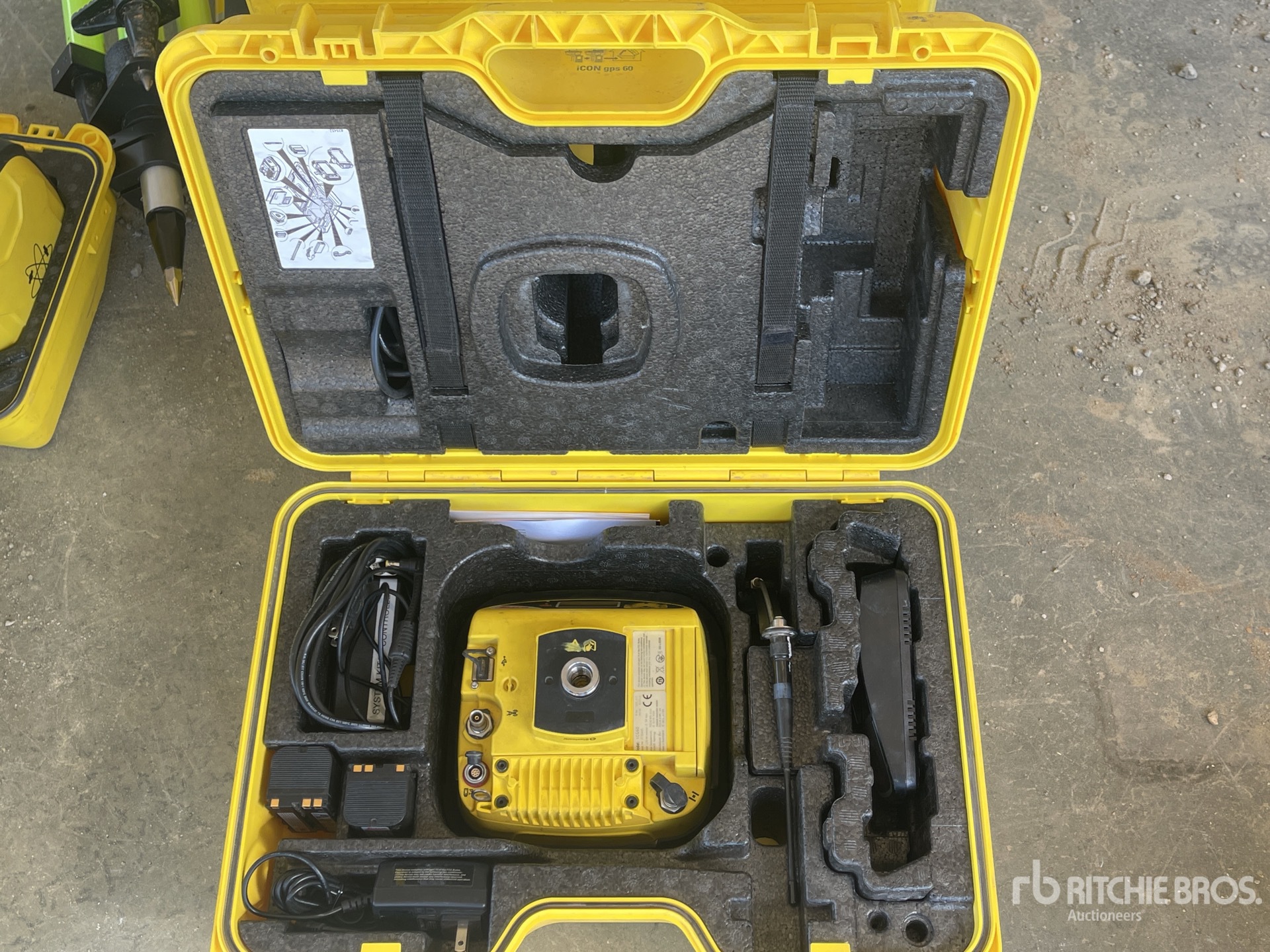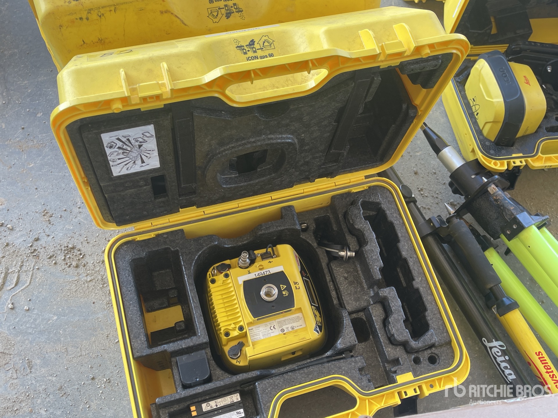 FZ-M1 CCA24EM S/N: 6LTCA09356 Controller - Panasonic - Leica. iCG70 S/N:2685343 Receiver - GPS70, iCG60 S/N:2681575 Antenna - Rover - GPS60, iCG60 S/N:2681410 Antenna - Rover - GPS60, iCG82 S/N:2925969 Receiver - GPS80, MDS20 S/N: 2630275 Machine Docking Station, MCP80 S/N:2630804 Display - Machine Control, CGA60 S/N:17150022 Antenna, CGA60 16330115 Antenna - Machine Control Kit-Range Pole S/n:149711 Leica Range Pole w/Bi-pod, Tripod S/N:5119-00-FLY - L Leica Tripod, GKL341 S/N: 799187 Leica Battery Charger