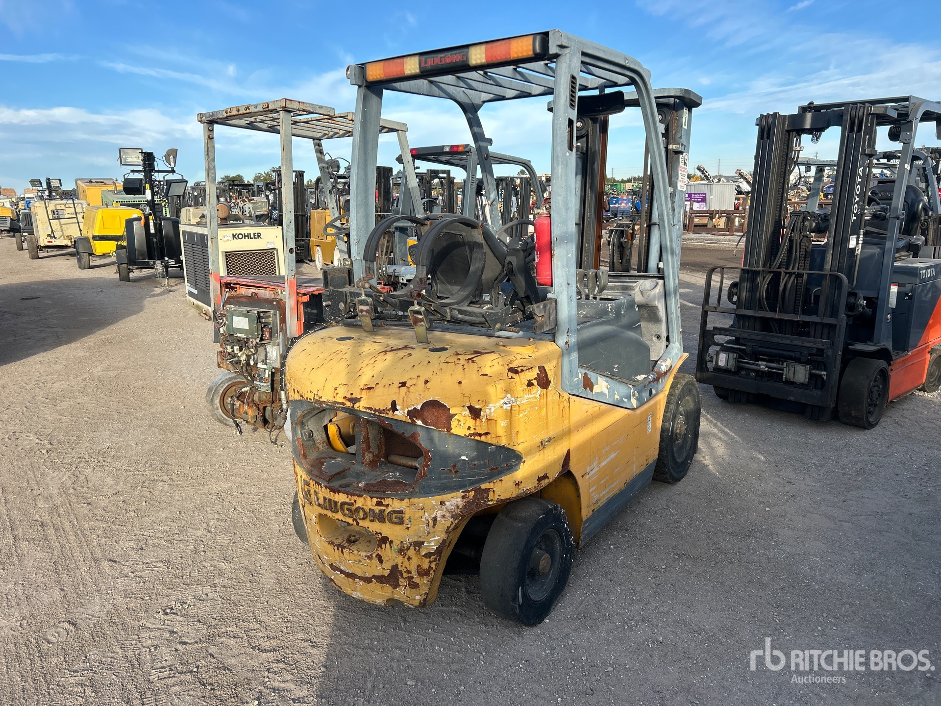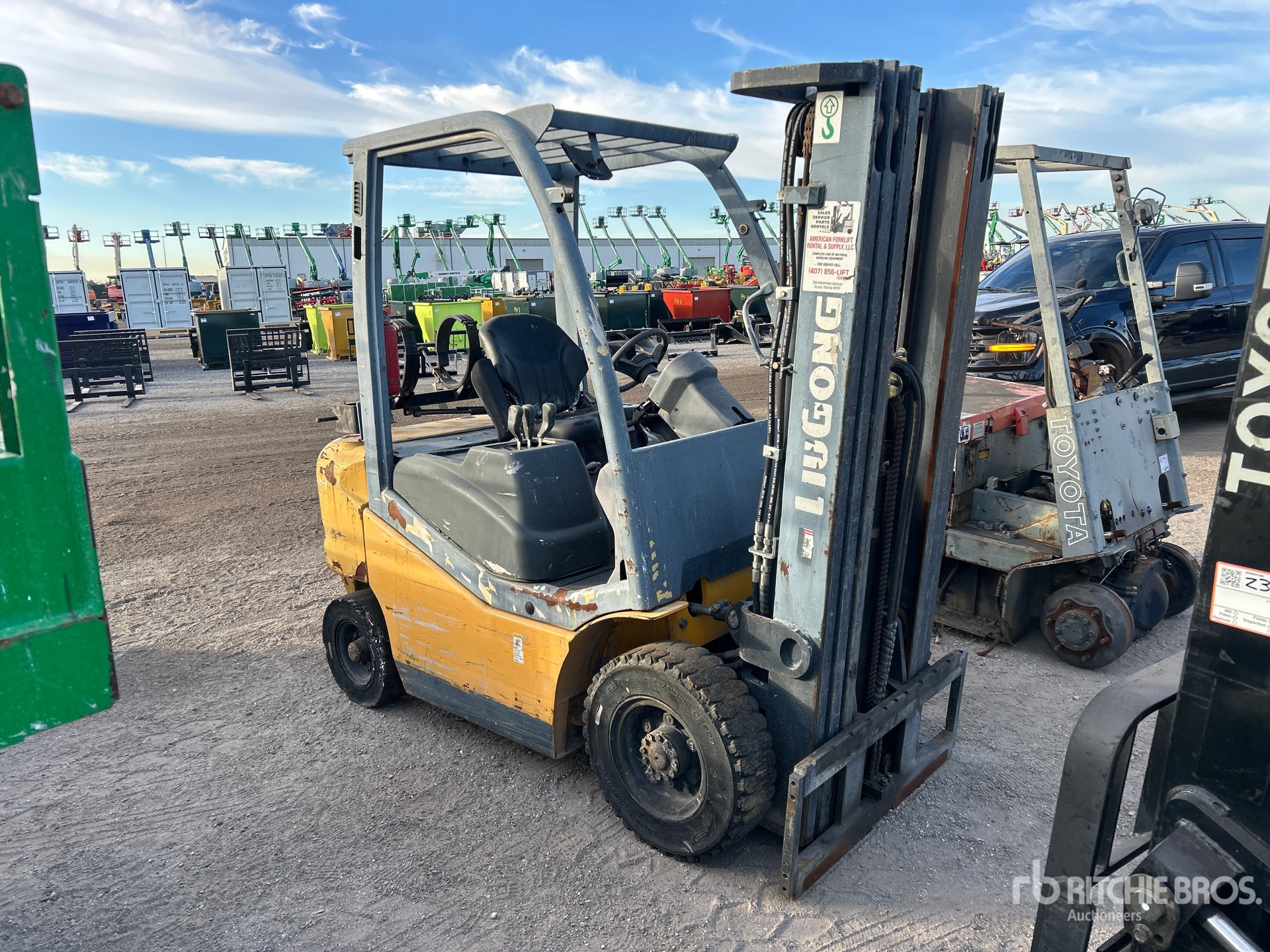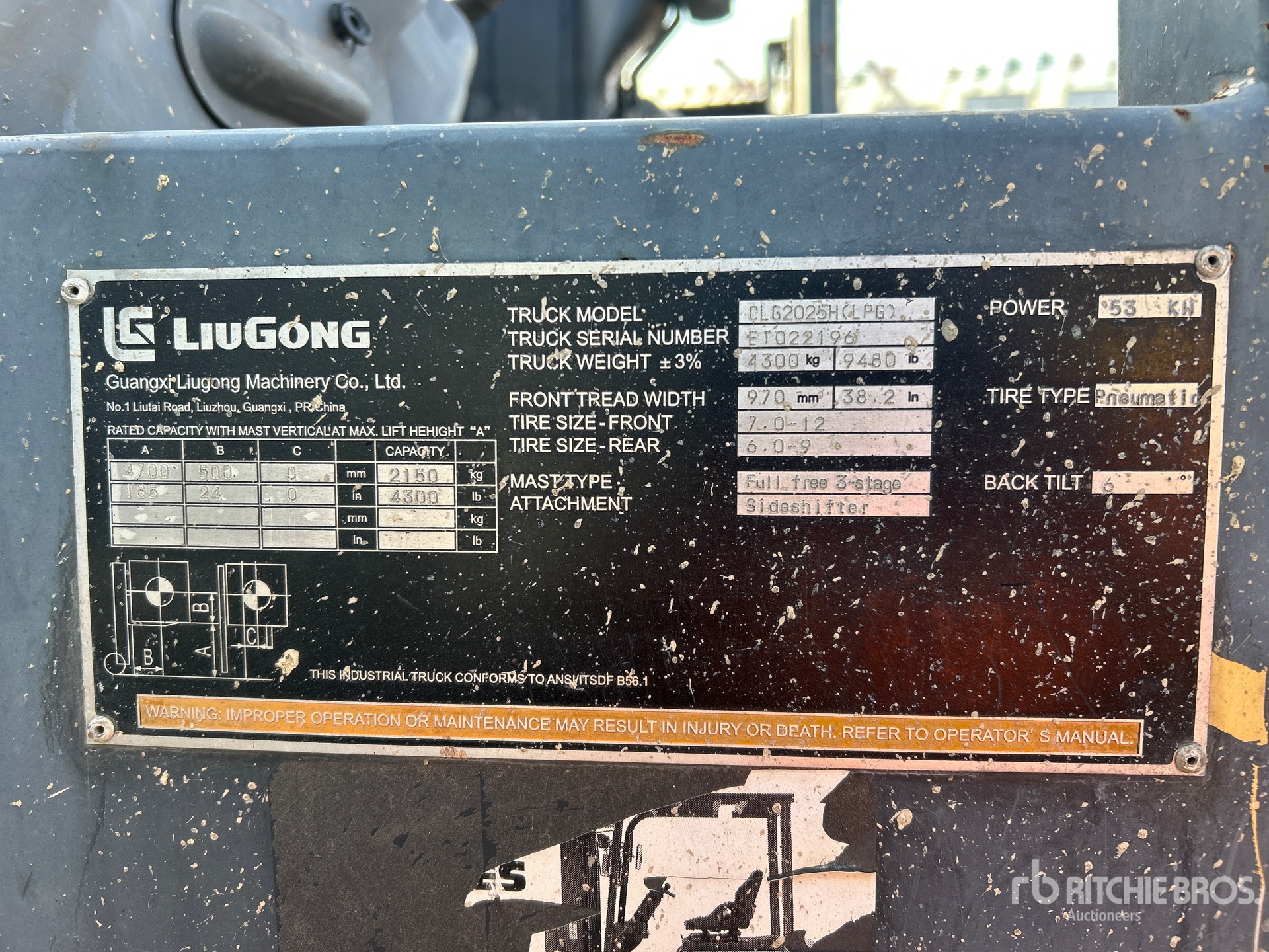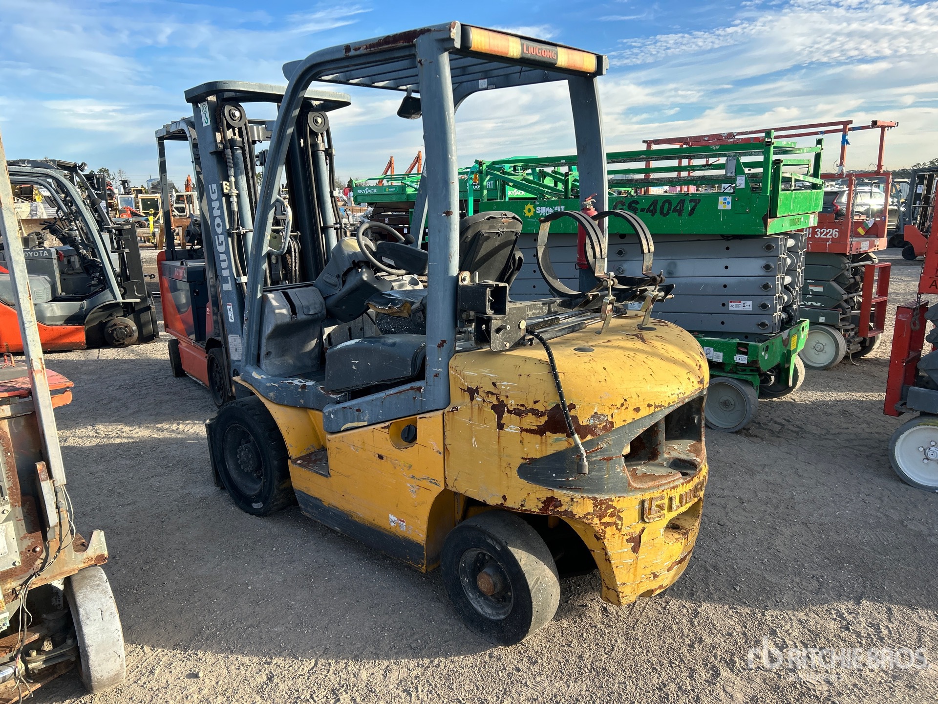 3 Stage Mast, 185 in Max Lift Height, 84 in Lowered Mast Height, Solid Pneumatic Tires, 4 Cylinder LPG Engine