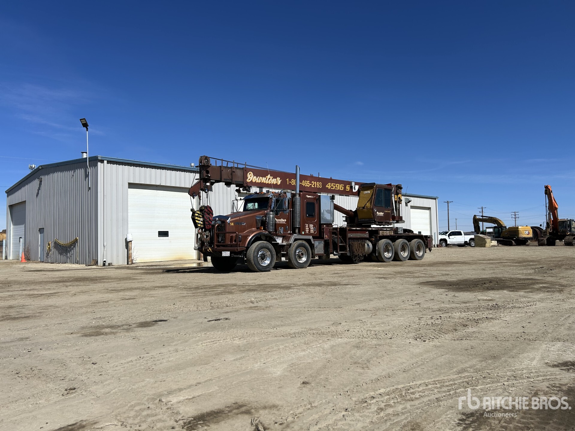 Cat C15 6 Cylinder Diesel 475 hp Engine, Engine Coolant Heater, Positive Air Shutoff, 22987 Engine hrs, Engine Brake, Eaton Fuller RTLO-18918B 18-Speed Manual Transmission, Triple Differential Locks, 37500 lb Front Axle, 58000 lb Rears, Dana T69-170HP Drive Axles, 4.56:1 Axle Ratio, Flat Top Sleeper Cab, Aluminum Wheels, 425/65R22.5 Front Tires, 11R24.5 Rear Tires, Dual Steering Boxes, Double Frame, Air Assist Front Suspension, Neway Air Ride Suspension, 310 in Wheelbase, PTO, 30.5 ft - 96 ft 4 Section Boom, McKissick 765 lb 4 Sheave 45 ton Capacity Hook Block, Enclosed Cab, Hirschmann Load Moment Indicator, Wireless Anti-Two Block, Hydraulic Tool Circuit, Out and Down Outriggers, Rear Outriggers, Auxiliary Hydraulics To Operate Pile Driver, Drum Camera , Equipment-from-Downtons-Transport
