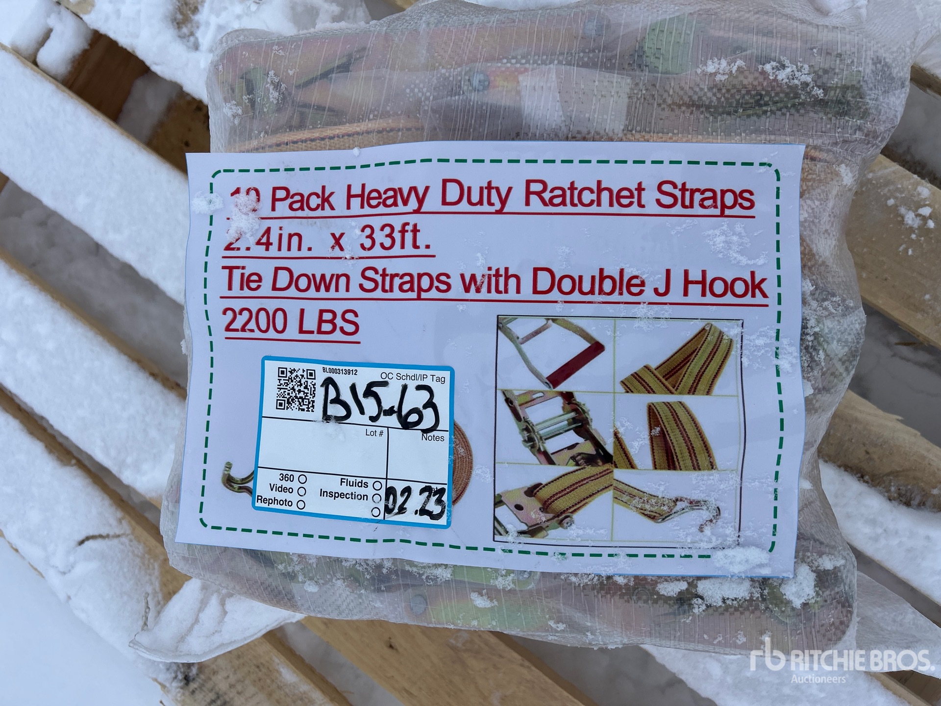 Quantity of (10) 2.4 In x 33 Ft Yellow Heavy Duty Ratchet Straps Élingue (Unused)