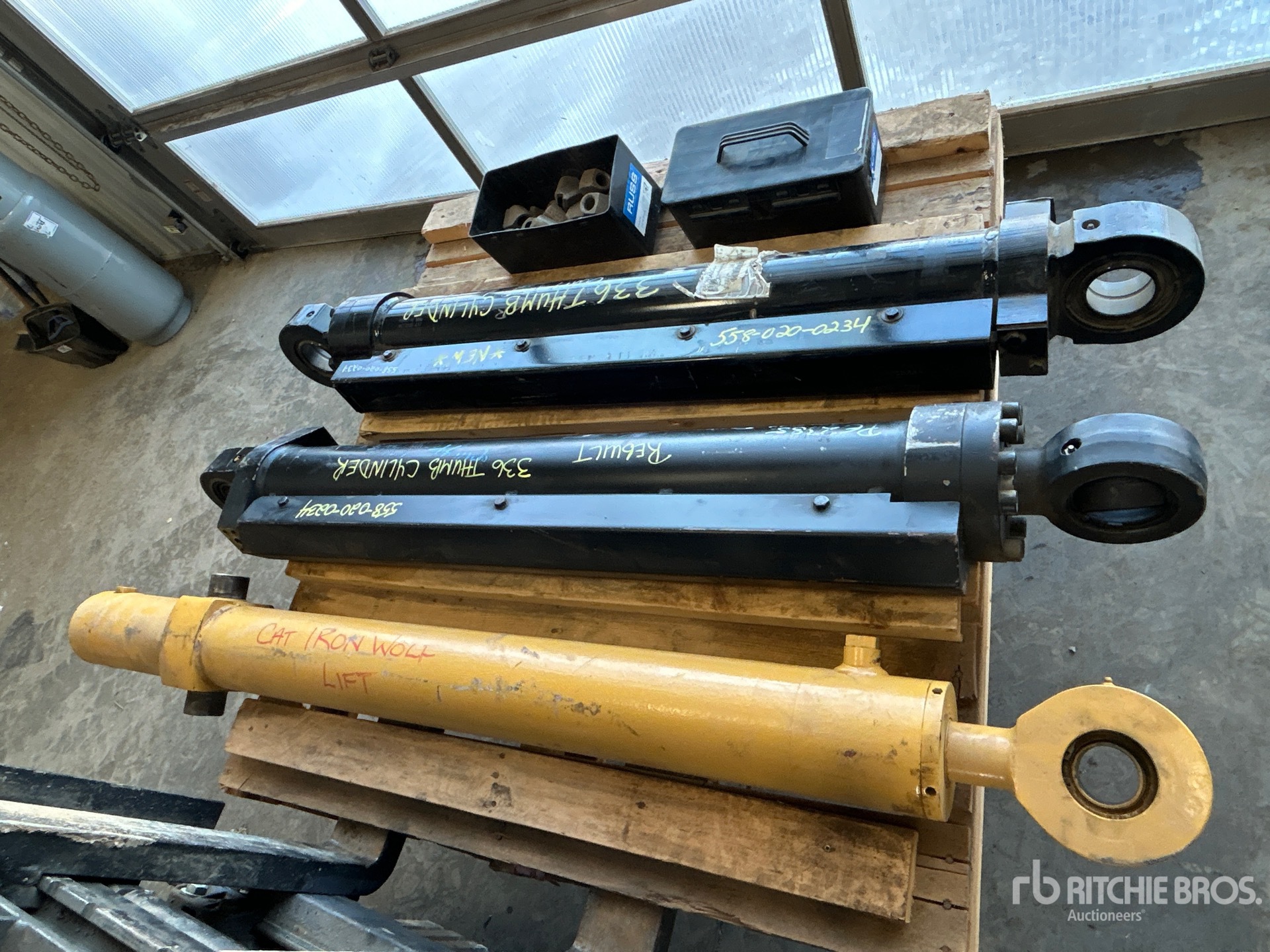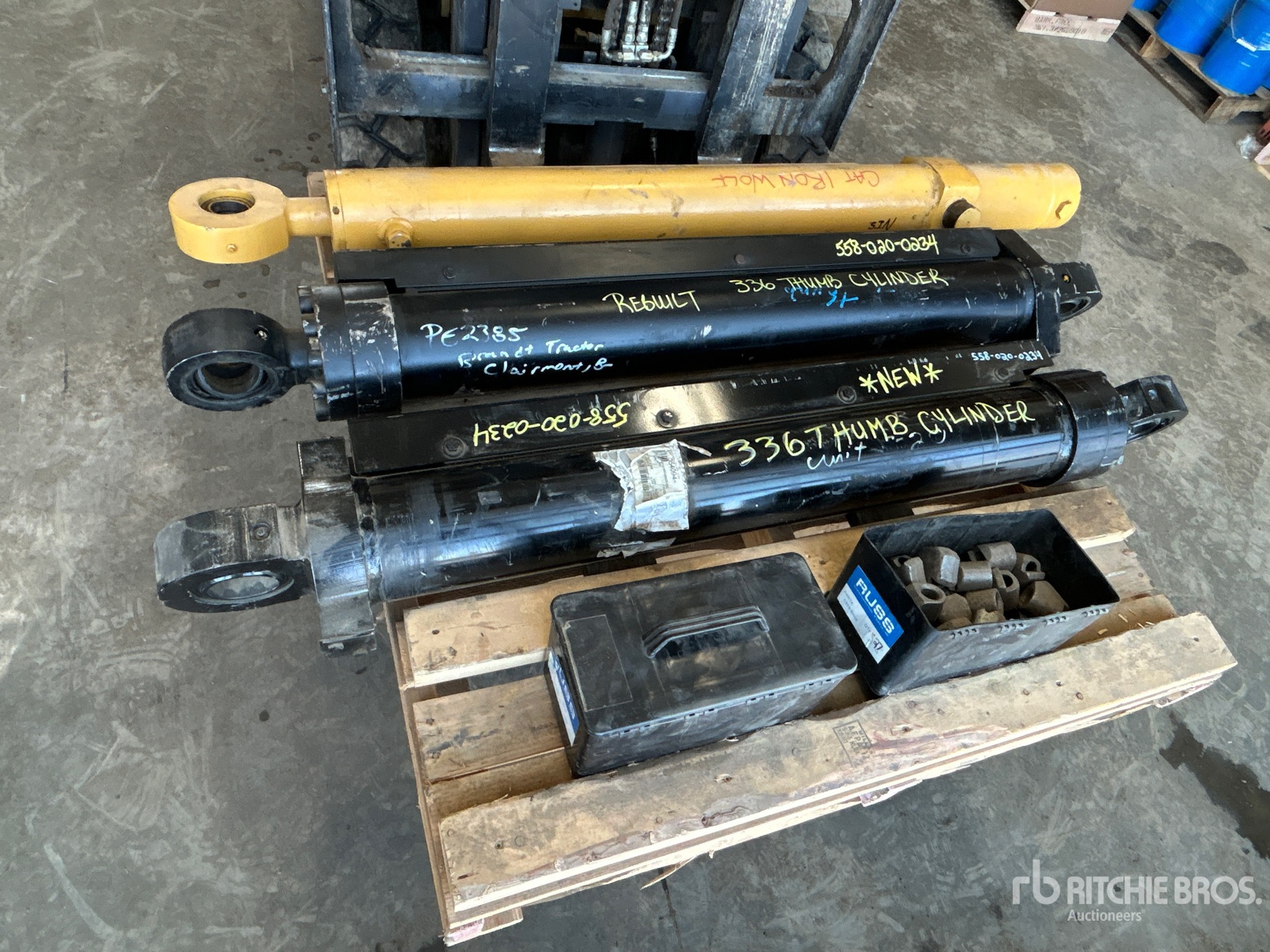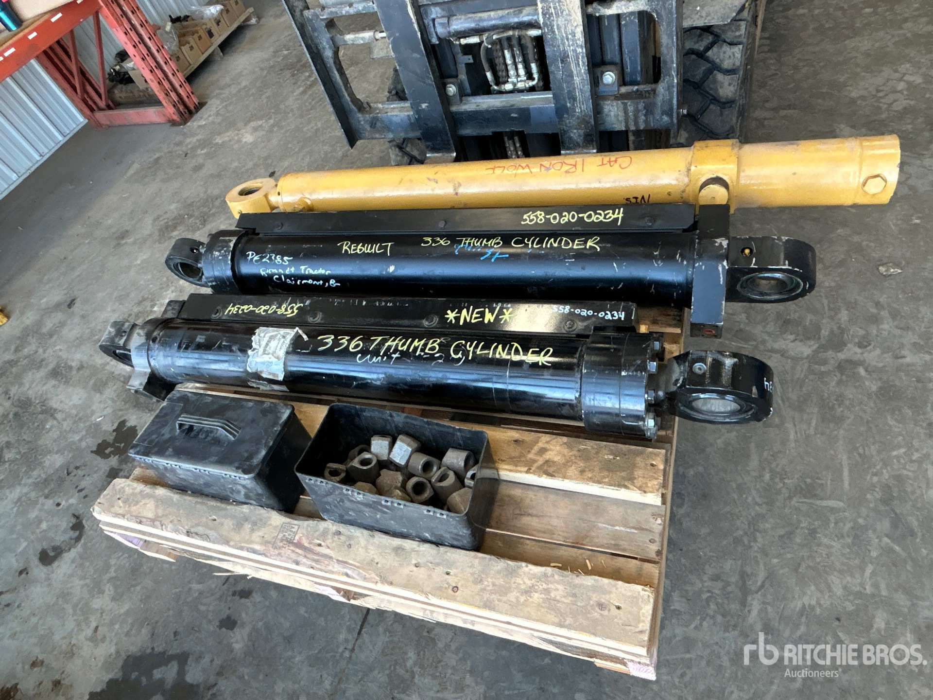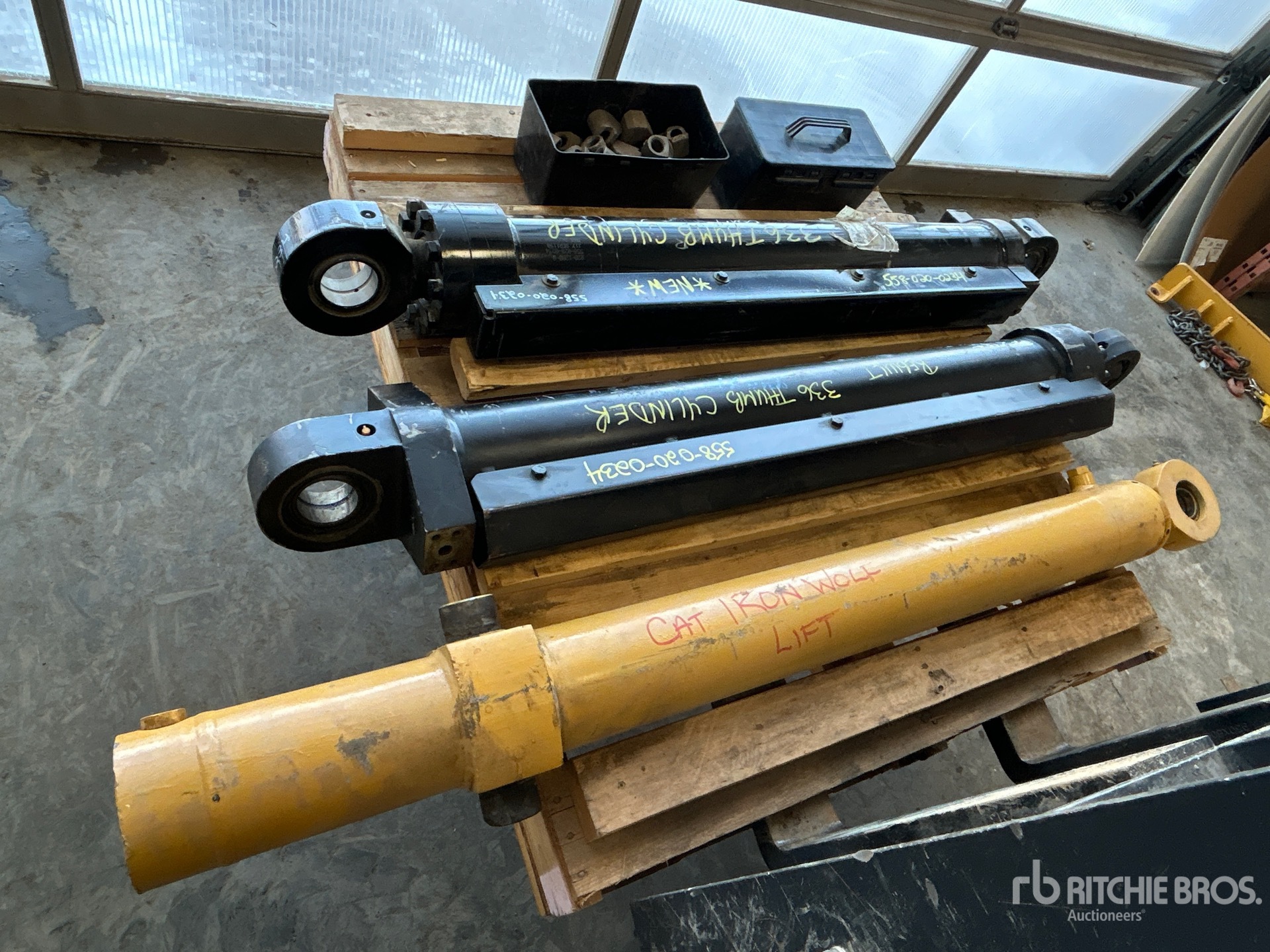 (1) Unused Cat 336 Thumb Cylinder, (1) 336 Rebuilt Cylinder, (1) Iron Wolf Lift Cylinder