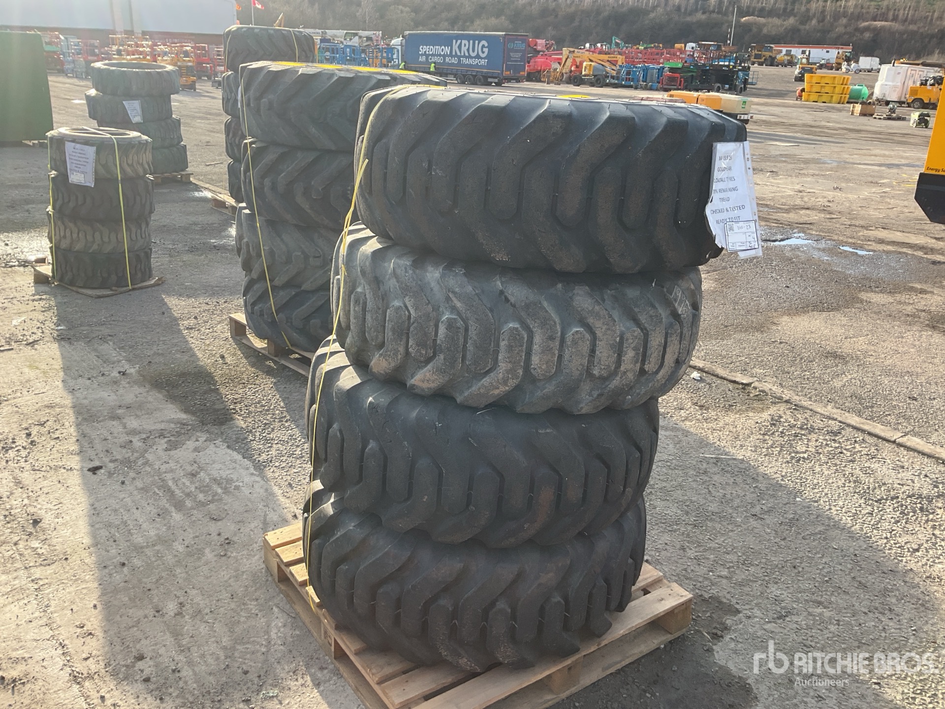 L'équipement n'a pas été testé avec charge ou utilisé dans toutes les situations applicables. Nous ne garantissons en aucun cas le bon fonctionnement de l'équipement conformément aux spécifications du fabricant. Aucune inspection n'a été effectuée pour vérifier tout aspect fonctionnel, sauf indication expresse dans le présent document. Seule une sélection de photos des composants individuels du train roulant sont à disposition, et peut ne pas indiquer l'état de l'ensemble de celui-ci.