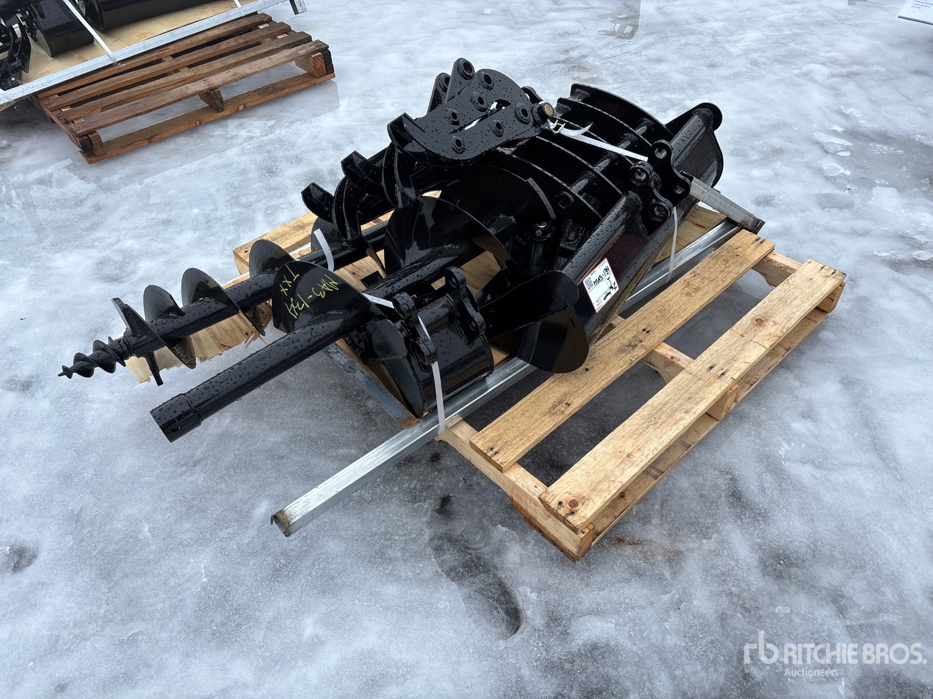 (1) Rake, (1) Ripper, (1) Grapple, (1) Auger w/ 12 in & 16 in Auger Bits, (1) 8 in Narrow Bucket, (1) 24 in Bucket, (1) 32 in Bucket