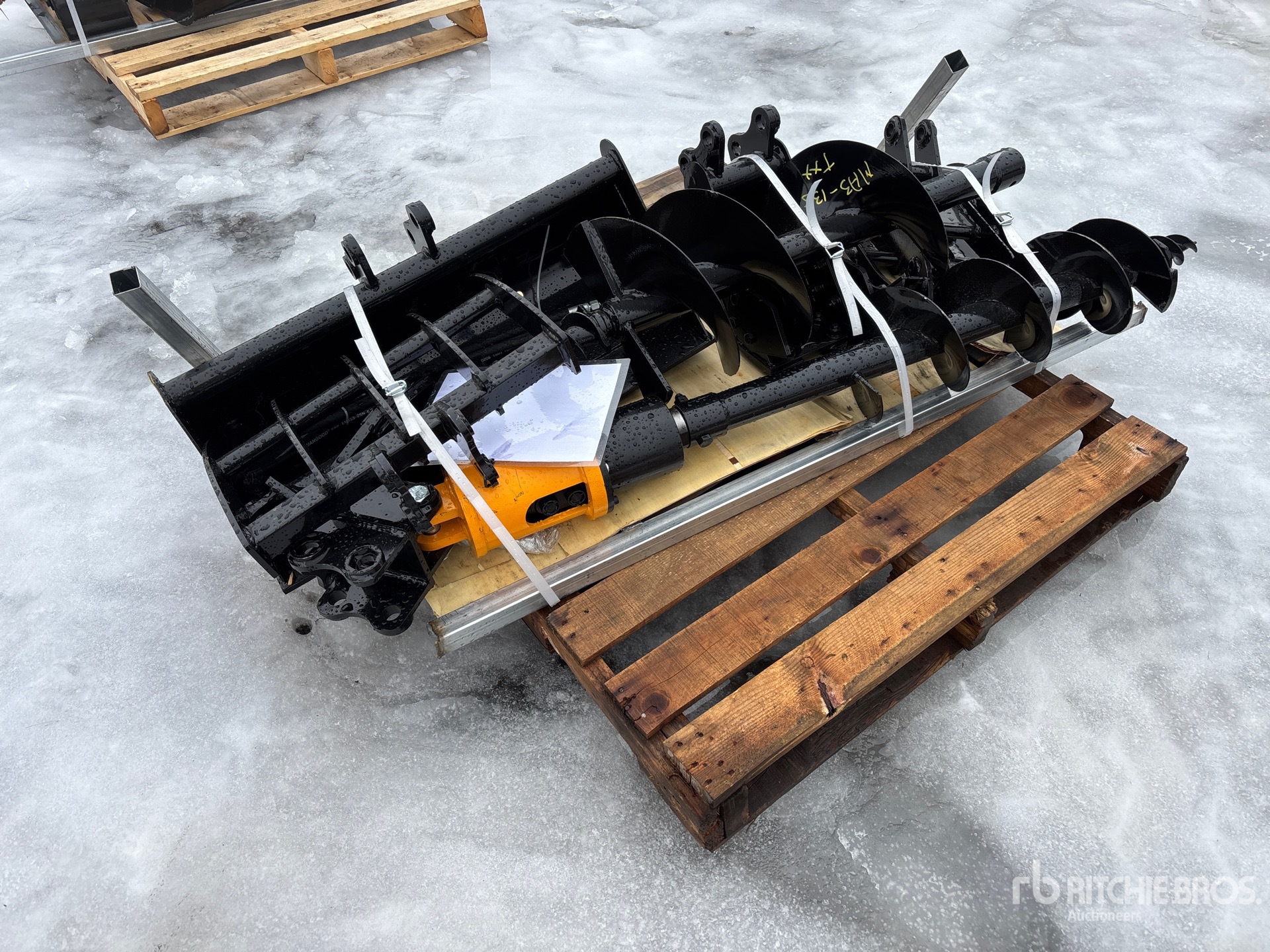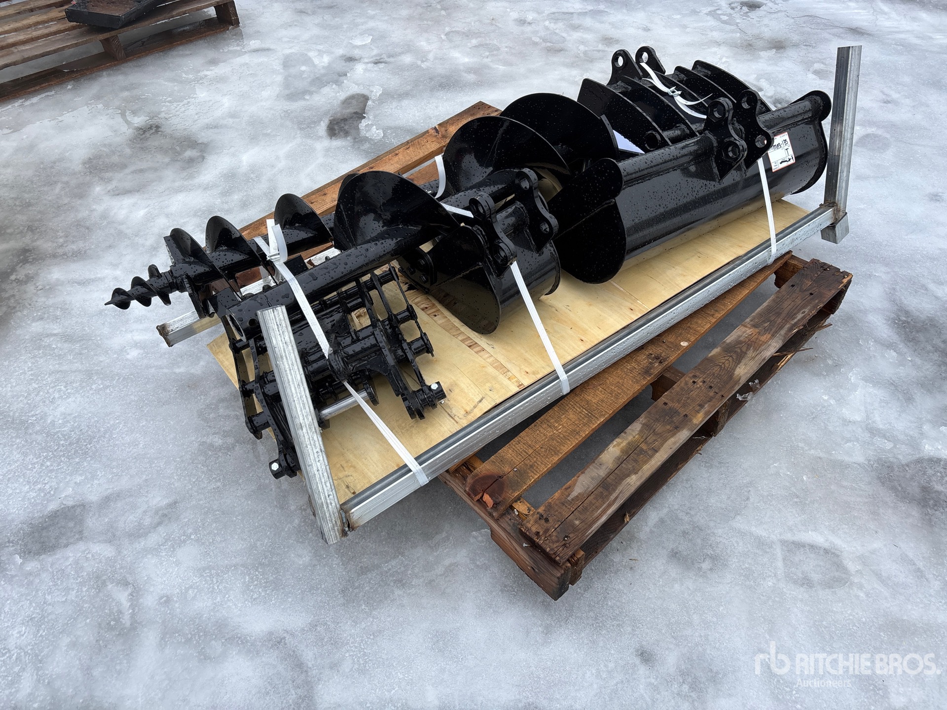 (1) Rake, (1) Ripper, (1) Grapple, (1) Auger w/ 12 in & 16 in Auger Bits, (1) 8 in Narrow Bucket, (1) 24 in Bucket, (1) 32 in Bucket