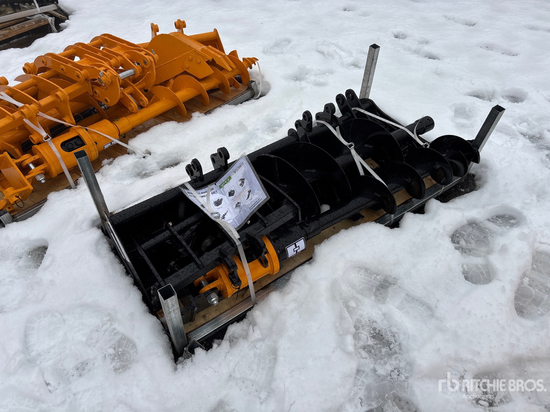 (1) Rake, (1) Ripper, (1) Grapple, (1) Auger w/ 12 in & 16 in Auger Bits, (1) 8 in Narrow Bucket, (1) 24 in Bucket, (1) 32 in Bucket