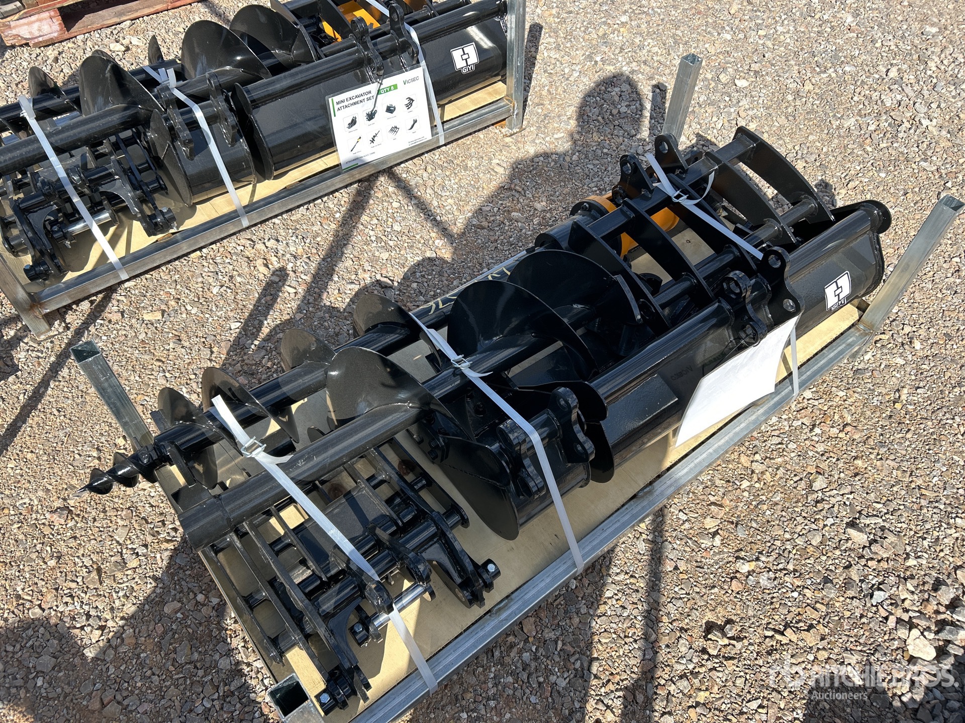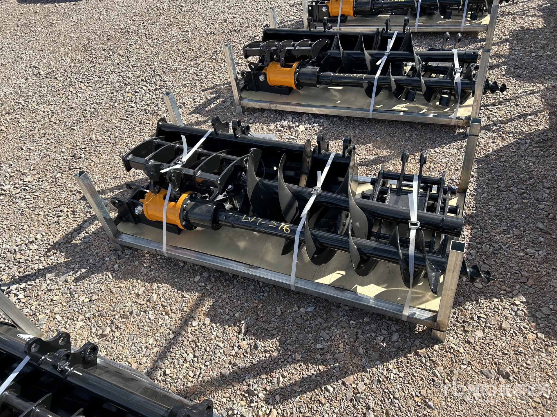 (1) Rake, (1) Ripper, (1) Grapple, (1) Auger w/ 12 in & 16 in Auger Bits, (1) 8 in Narrow Bucket, (1) 24 in Bucket, (1) 32 in Bucket