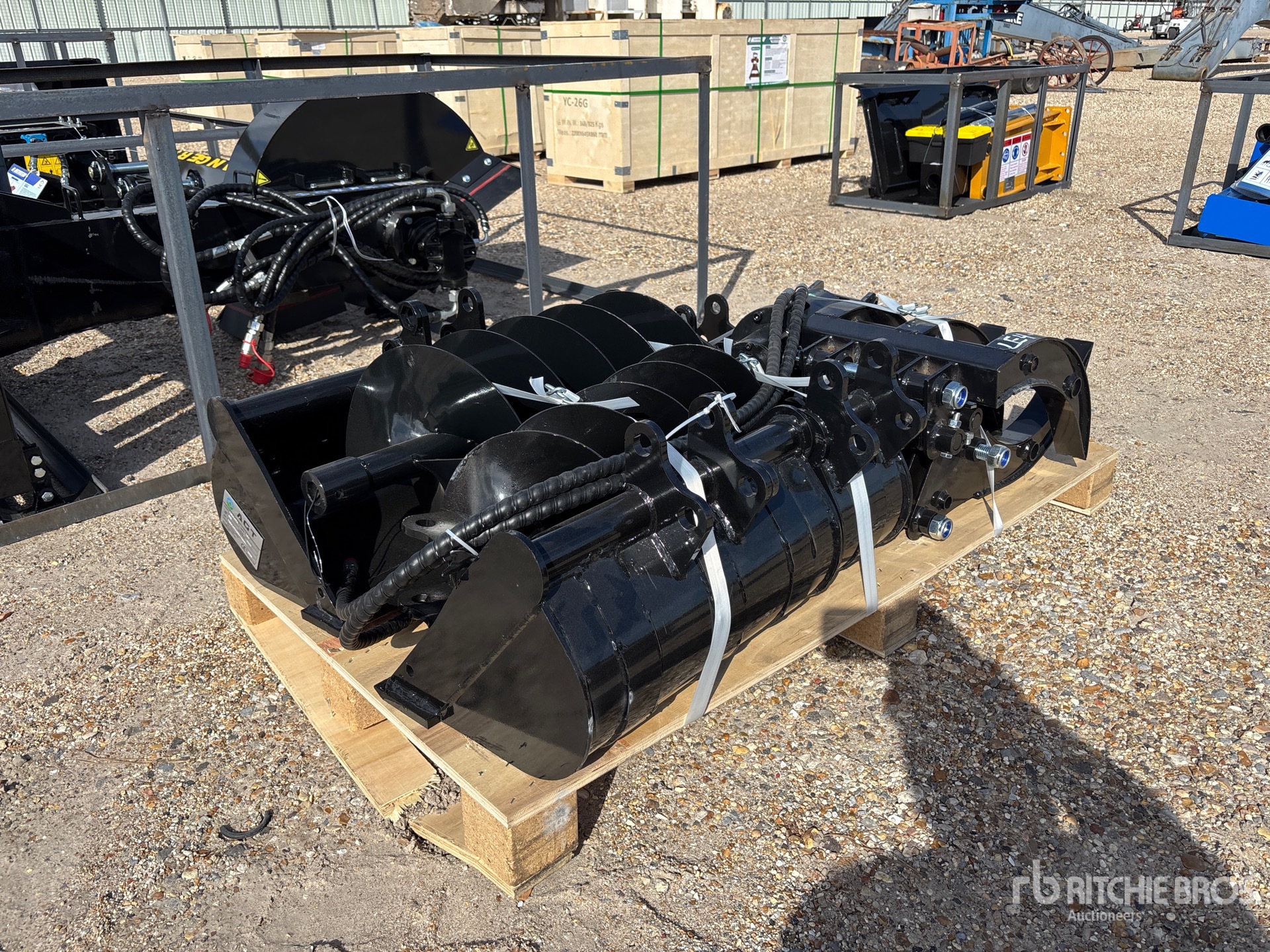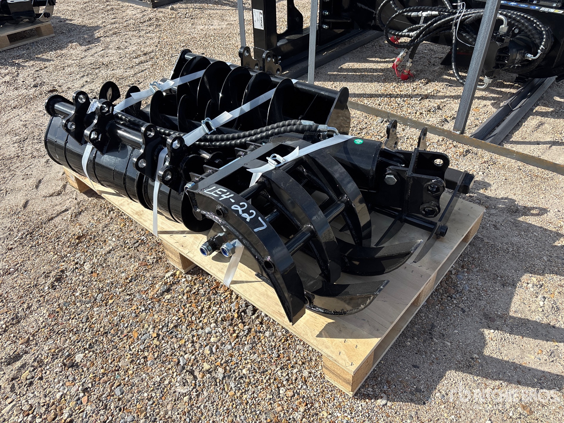(1) 8 in Bucket, (1) 20 in Bucket, (1) 32 in Bucket, (1) Quick Coupler, (1) Ripper, (1) Grapple, (1) Rake, (1) 8 in Auger, (1) 12 in Auger,