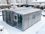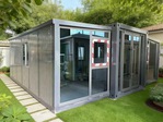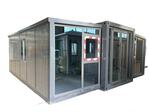 Extended Internal 19.4×20.7×8.1, Folded Size 19.4×7.22×8.1, 1. Bathroom: Wall Panel Partition Door, Toilet, Wash Basin, Mirror 2. Bathroom: Shower, Glass Sliding door (Pre-installed Sewer & Sewer Pipes) 3. L-shaped Vertical Cabinets, Marble Countertops, Wooden Cabinets, w/ Stainless Steel Sink & Faucet 4. Aluminum Alloy Door & Windows 6. Picture Windows 6. Floor Upholstery 7. American Standard Socket