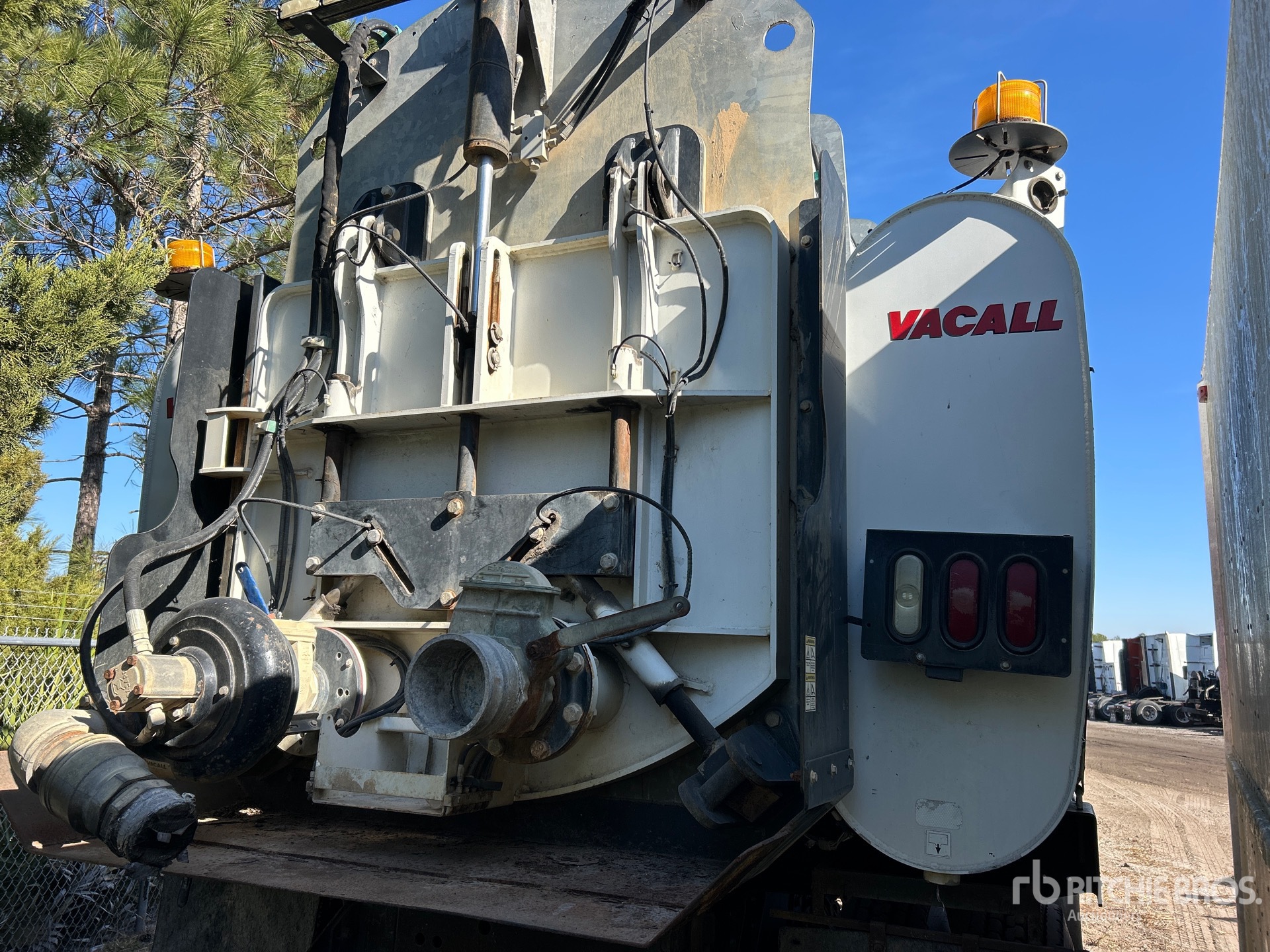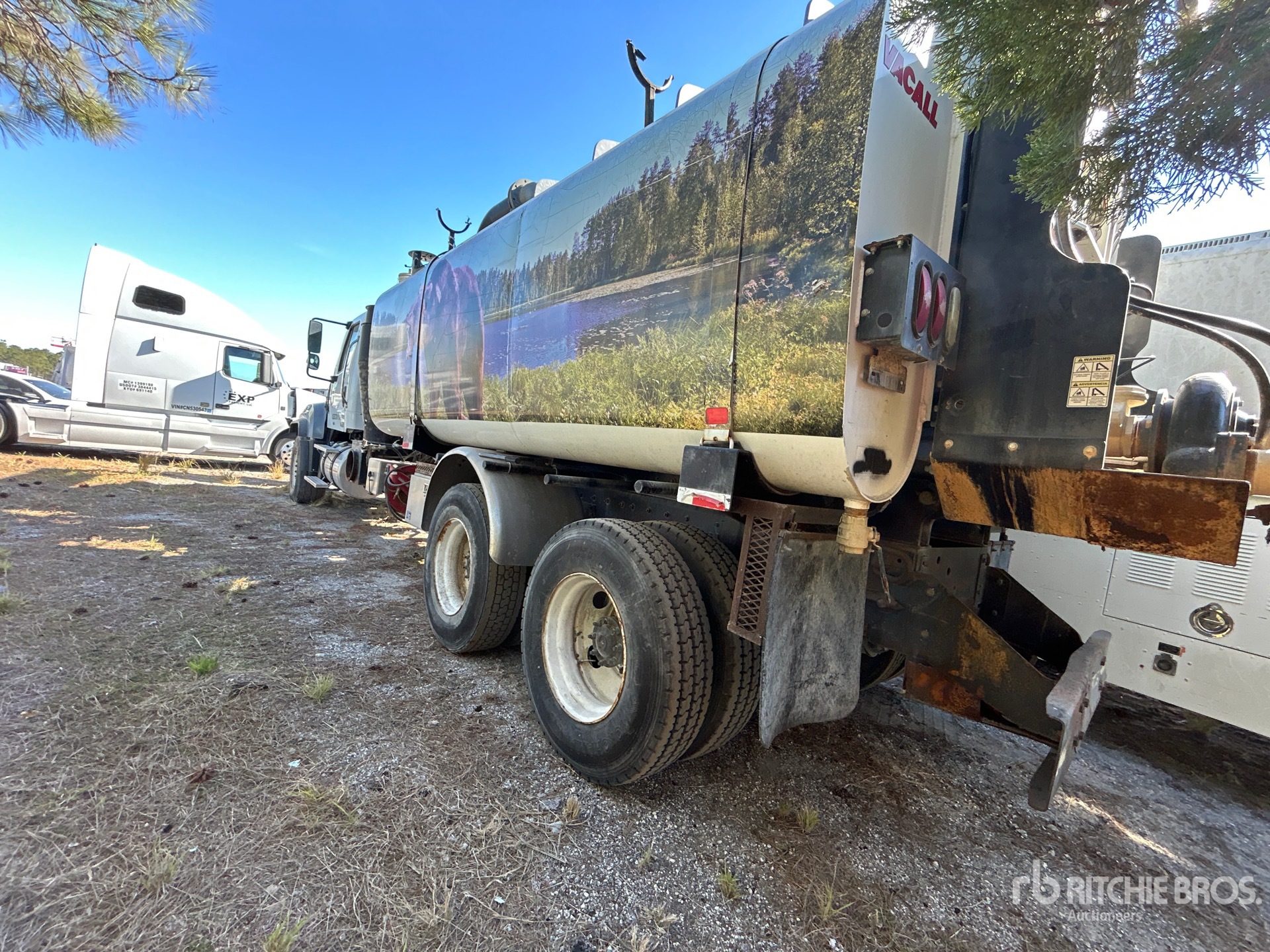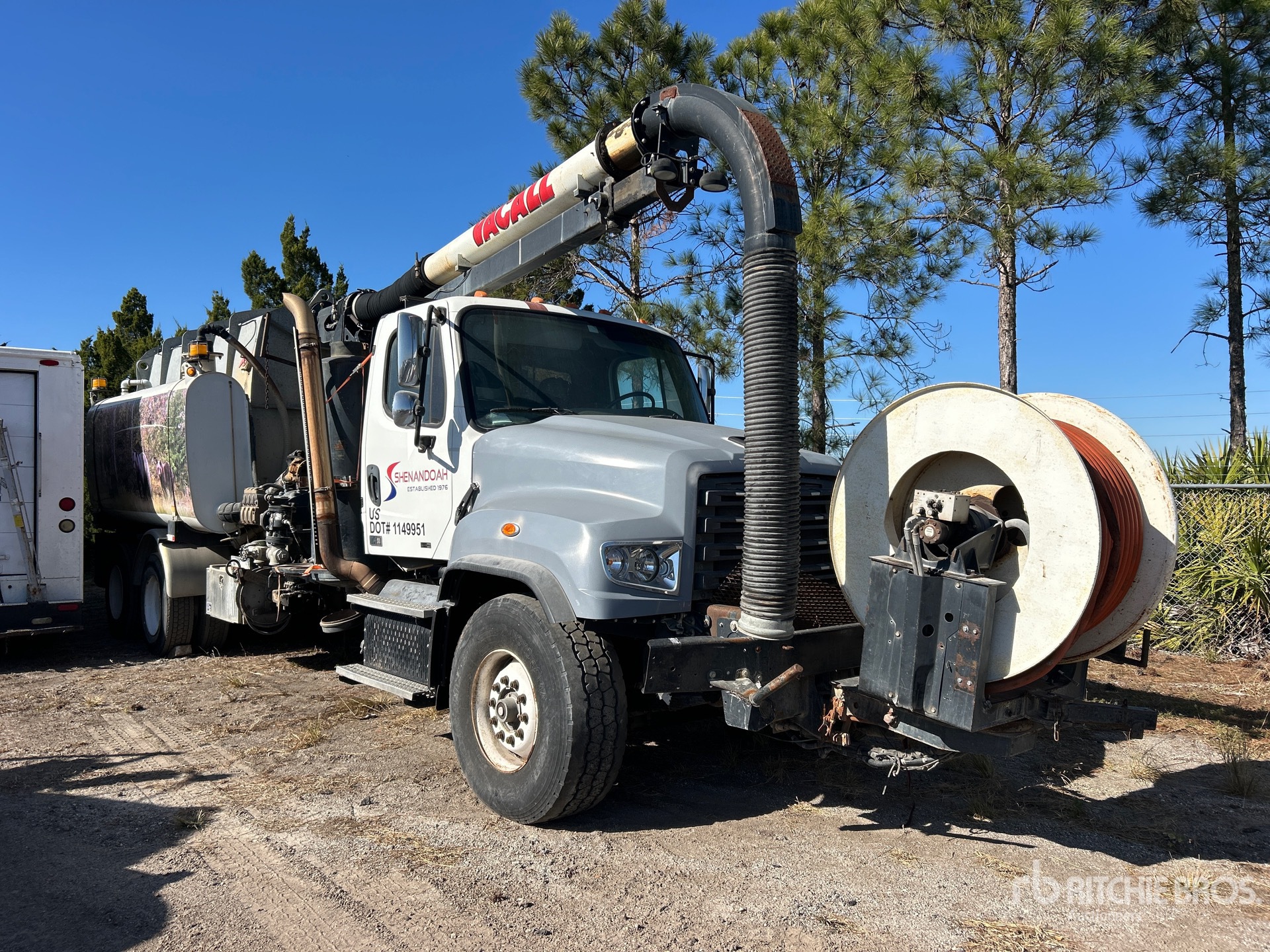 Detroit DD13 6 Cylinder 12.8 L Diesel 410 hp Engine, 2014 US EPA Label, Requires Diesel Exhaust Fluid, Engine Brake, Allison 4000 Automatic Transmission, 20000 lb Front Axle, 46000 lb Rears, 66000 lb GVWR, Air Ride Cab, 425/65R22.5 Front Tires, 11R22.5 Rear Tires, Dual Steering Boxes, Double Frame, Hendrickson RT/RTE Series Spring over Walking Beam Suspension, 275 in Wheelbase, PTO, Steel Debris Tank, Front Hose Reel, Fresh Water Tank, Hydraulic Lift Tailgate, Hydraulic Tailgate Locks, Telescopic Boom, 8 in Suction Hose, PTO Driven Pump