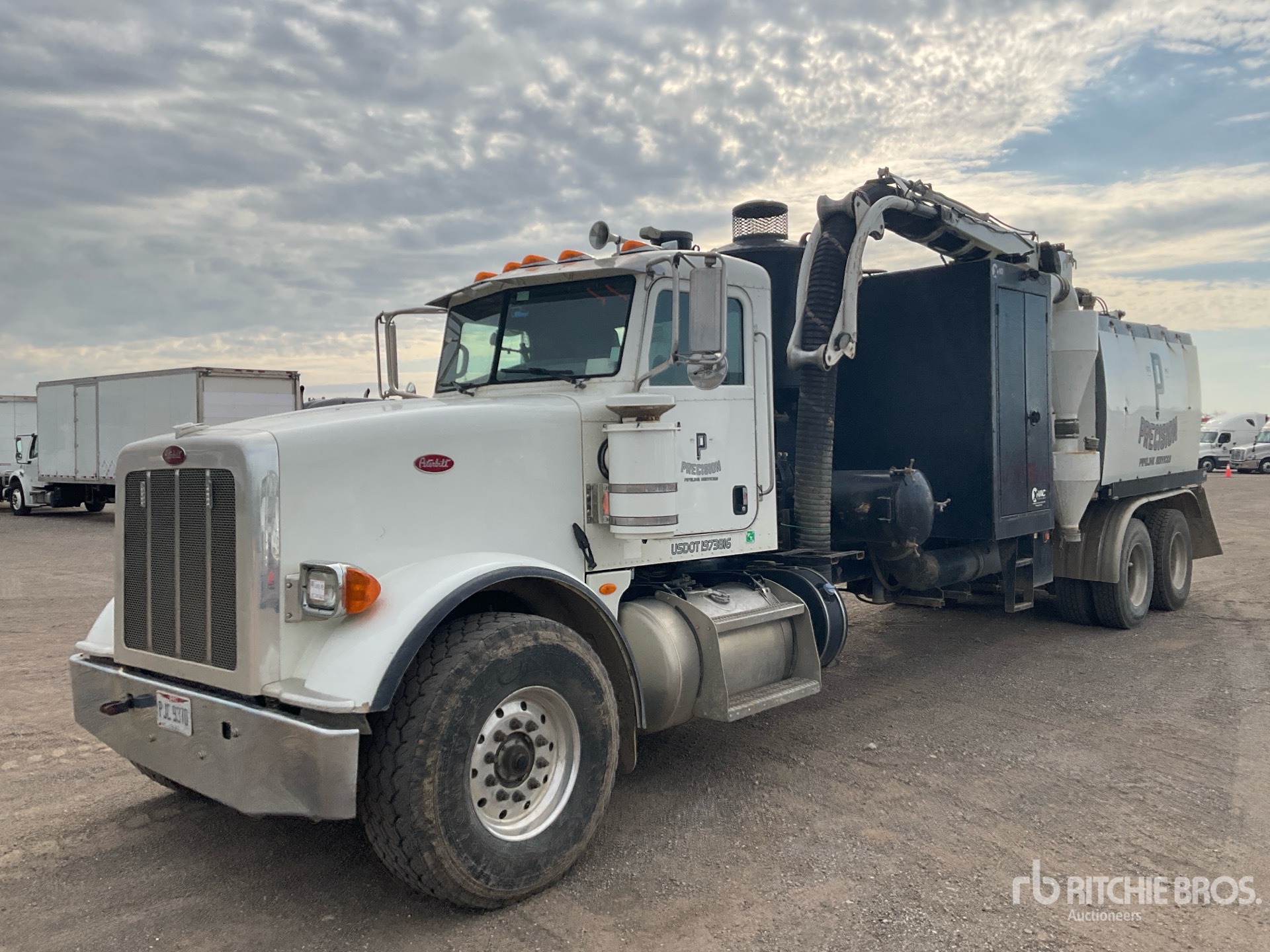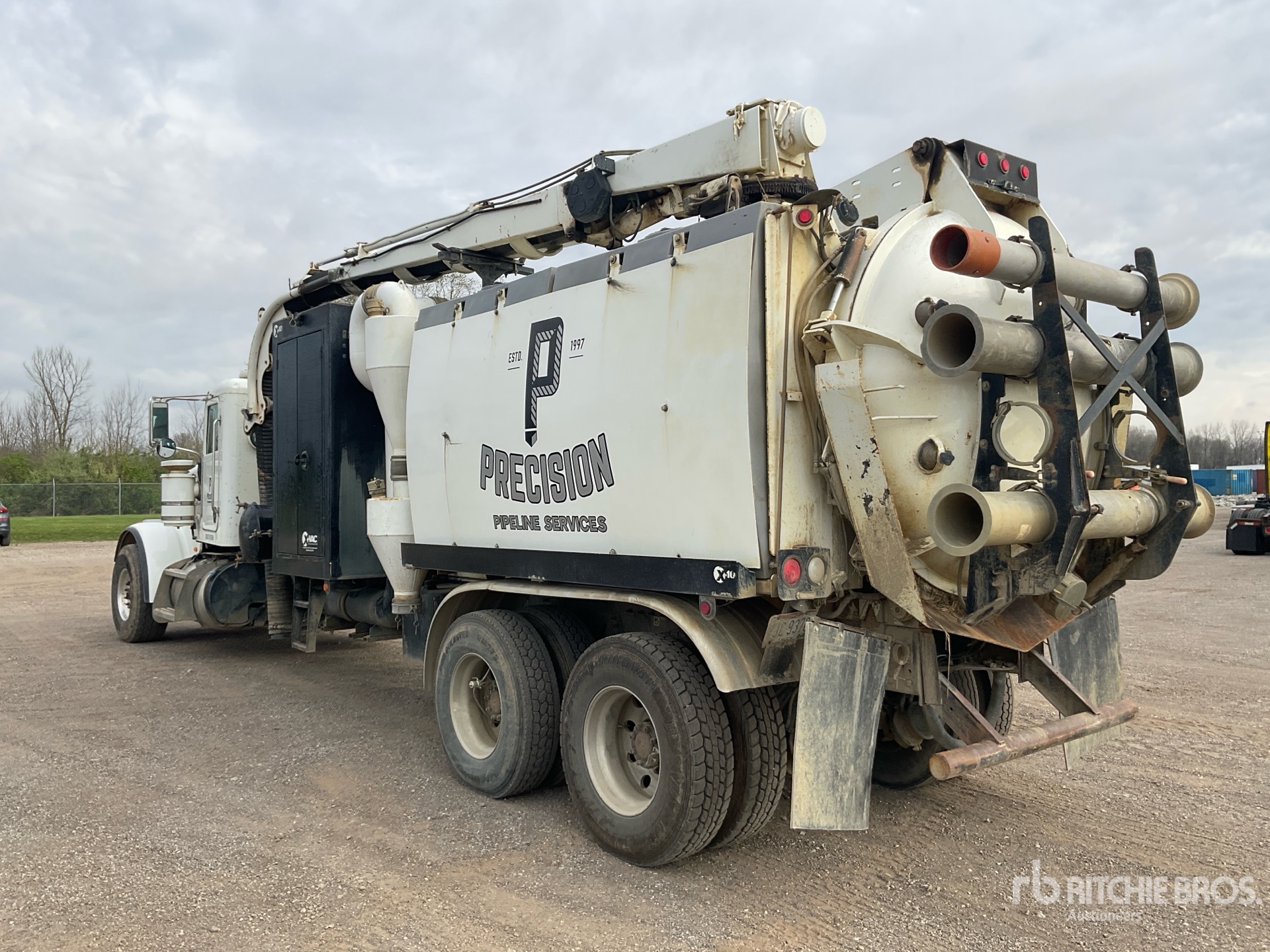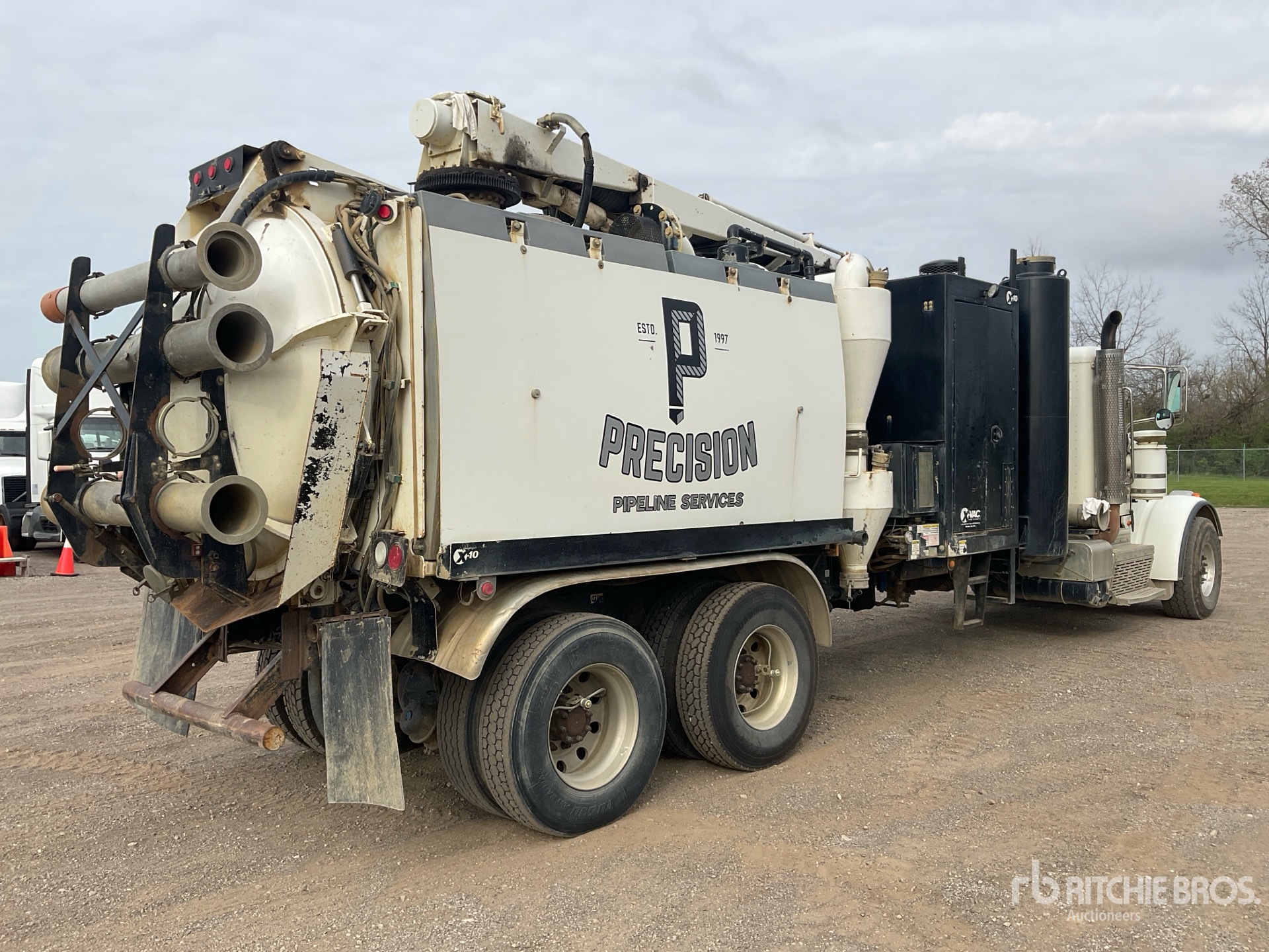 Cummins ISX15 6 Cylinder 15 L Diesel 485 kW Engine, 2014 US EPA Label, 16111 Engine hrs, Engine Brake, Eaton Fuller 13-Speed Manual Transmission, 64000 lb GVWR, Air Ride Cab, Aluminum Wheels, 425/65R22.5 Front Tires, 11R22.5 Rear Tires, Dual Steering Boxes, Double Frame, Spring over Walking Beam Suspension, 325 in Wheelbase, PTO, Steel Debris Tank, Hoist, Fresh Water Tank, Wash Down System, Hydraulic Tailgate Locks, 15 ft Telescopic Boom, 7.5 in Suction Hose, Ingersol Rand Blower w/ 19 hrs, Boiler, Cordless Remote Control