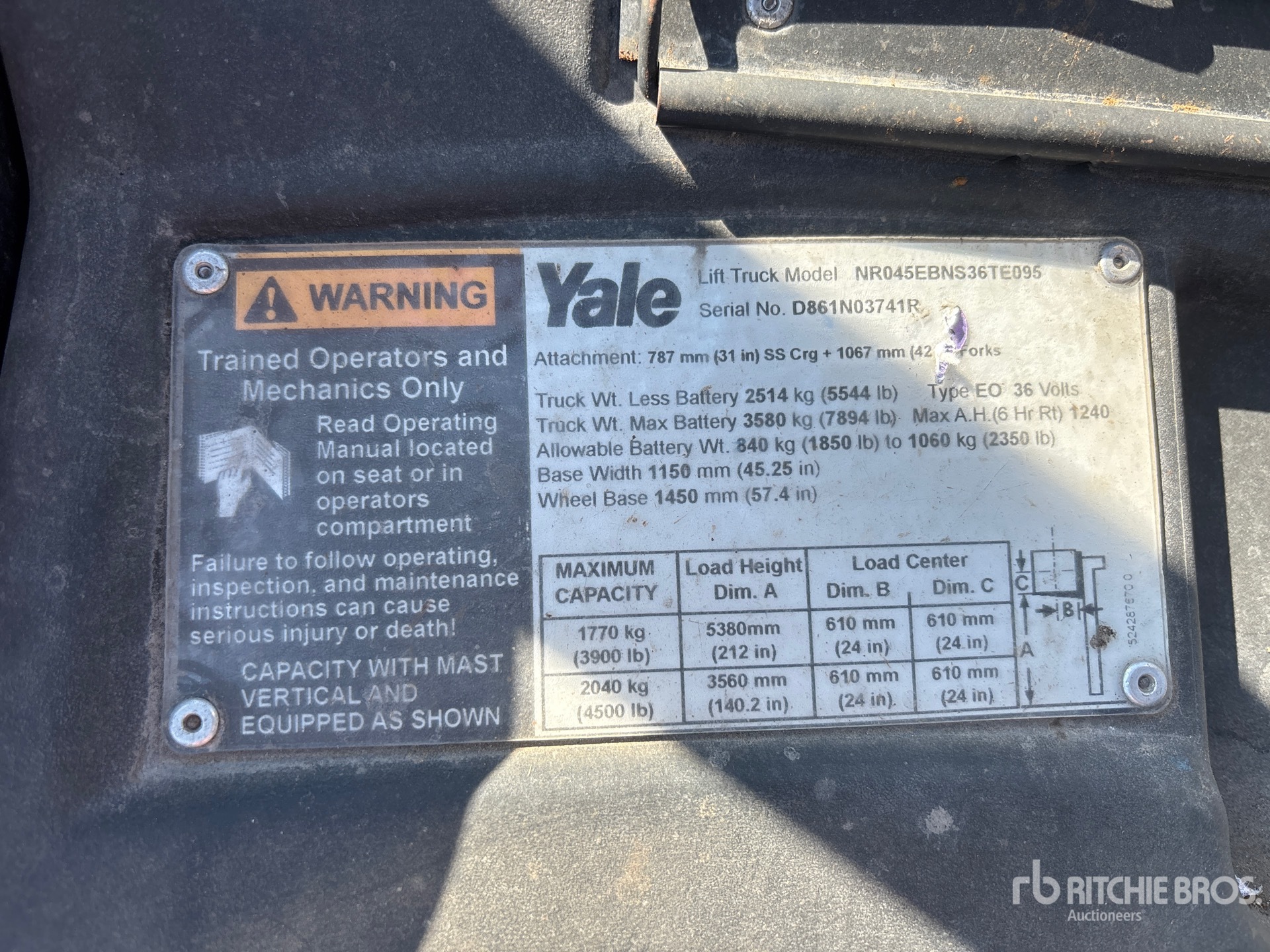 L'équipement n'a pas été testé avec charge ou utilisé dans toutes les situations applicables. Nous ne garantissons en aucun cas le bon fonctionnement de l'équipement conformément aux spécifications du fabricant. Aucune inspection n'a été effectuée pour vérifier tout aspect fonctionnel, sauf indication expresse dans le présent document. Seule une sélection de photos des composants individuels du train roulant sont à disposition, et peut ne pas indiquer l'état de l'ensemble de celui-ci.